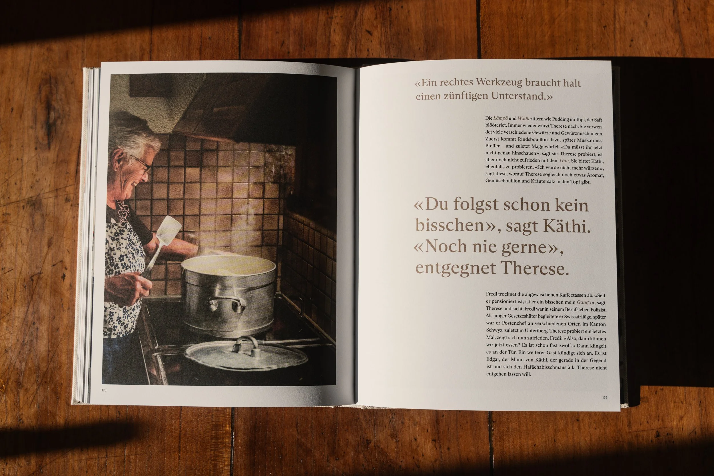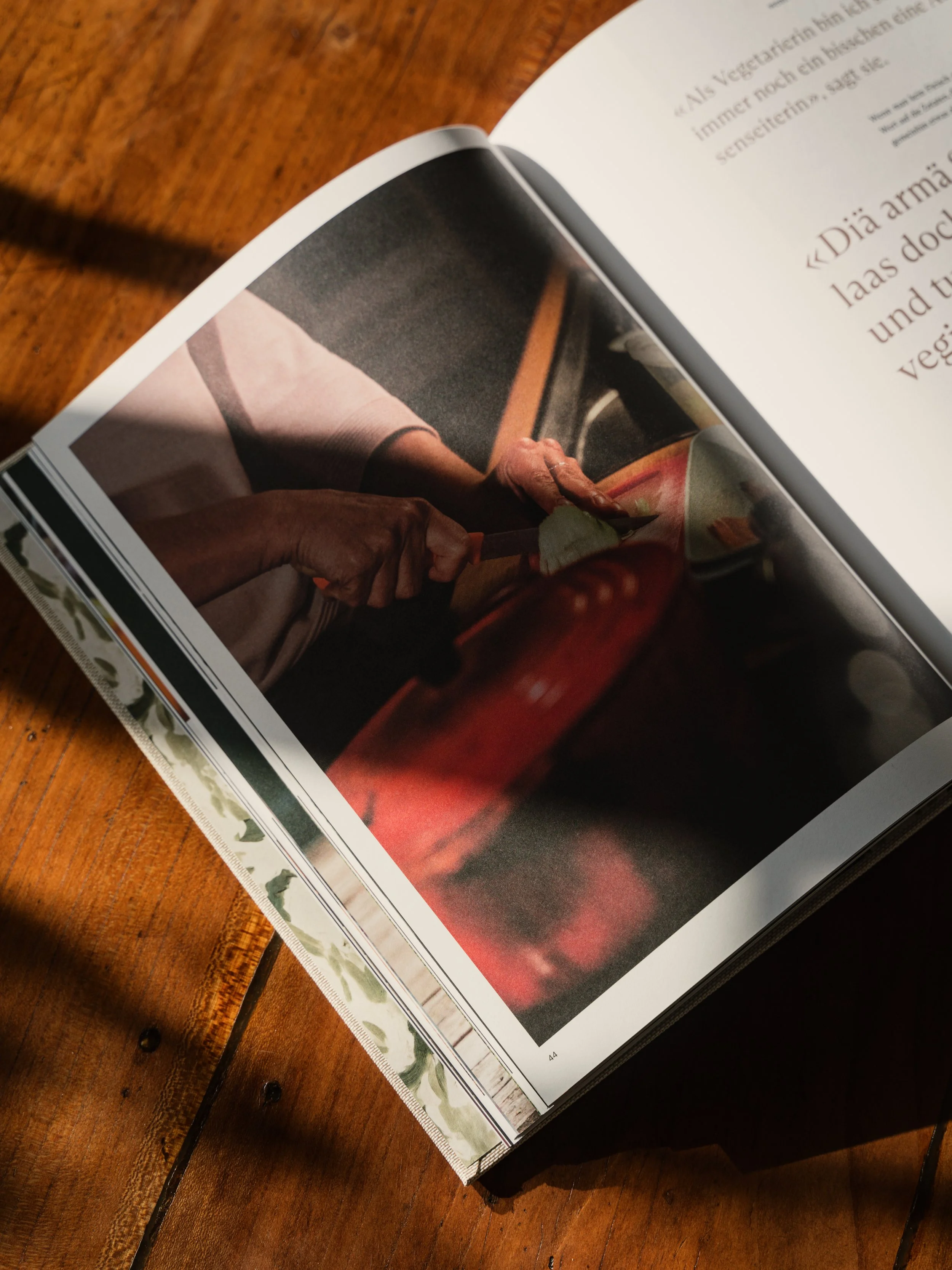 Die grösste Herausforderung bestand darin, die Essenz jedes Besuchs bei den 11 porträtierten Köchinnen und Köchen authentisch einzufangen. Ziel war es, den Kochprozess und die Atmosphäre der Begegnungen so zu visualisieren, dass die Lesenden das Gefühl haben, direkt dabei zu sein – als würden sie Seite an Seite mit den Köch*innen kochen. Dabei galt es, die Wärme und Echtheit der Küchen in Text und Layout gleichermassen spürbar zu machen und diese authentische, persönliche Erfahrung nahtlos zu transportieren.
