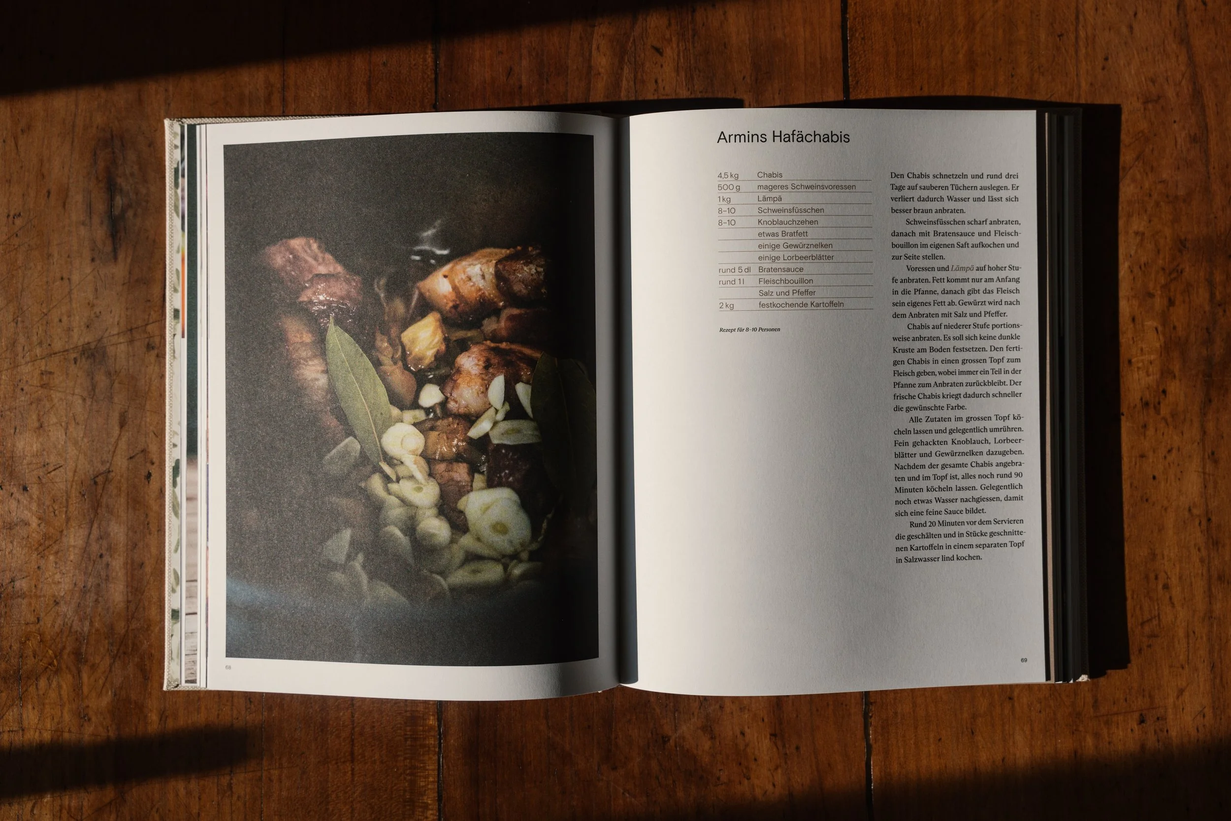 «Hafächabis, Chabis und Schaffleisch, Chabishafä» erweckt die einfachen, aber tief verwurzelten Ursprünge eines traditionellen Zentralschweizer Gerichts zum Leben – ein Gericht, das sein eigene Buch verdient.