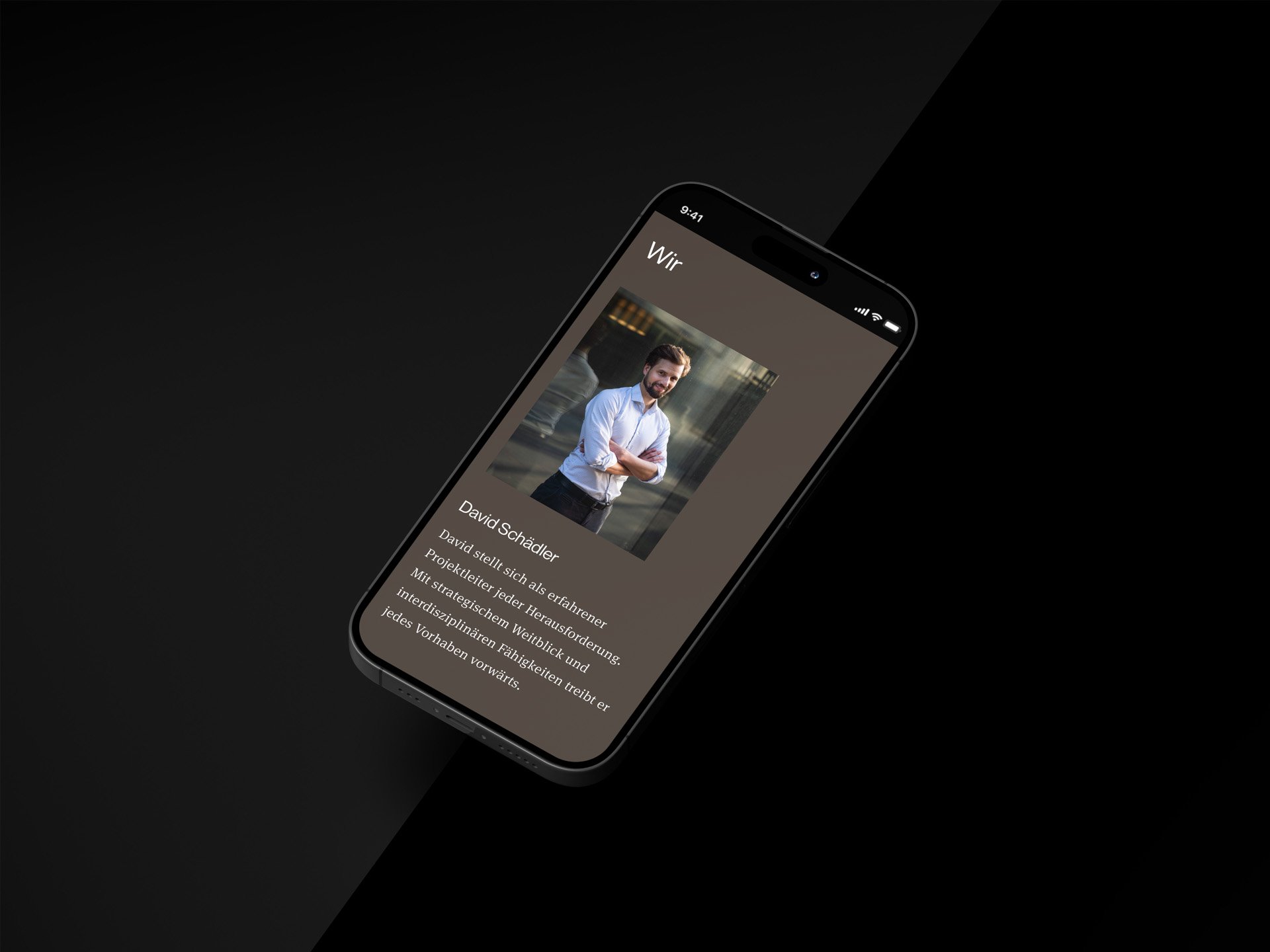 Das Ergebnis: ein Design, welches das Pfeilmotiv als Symbol für Fortschritt und Flexibilität nutzt. Diese Elemente spiegeln die Dynamik einer sich ständig verändernden Zukunft wider. Die visuelle Strategie spielt mit Gegensätzen: Authentische Porträts der Berater treffen auf abstrakte, bewegte Bilder, die Energie und Zukunftsdenken transportieren.